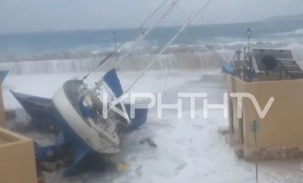 Καρέ – καρέ αποτυπώνεται η πρωτοφανής δύναμη των κυμάτων, τα οποία καταφέρνουν να «σηκώσουν» ιστιοπλοϊκό μήκους περίπου 15 μέτρων.