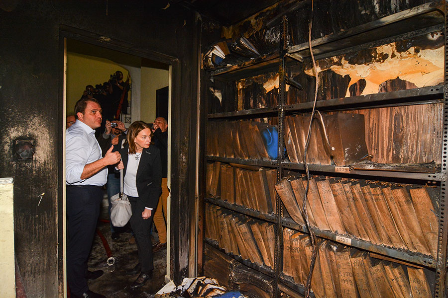 «Βομβαρδισμένο τοπίο» η Εφορία που κάηκε στη Λάρισα – Δείτε βίντεο από το εσωτερικό του κτιρίου