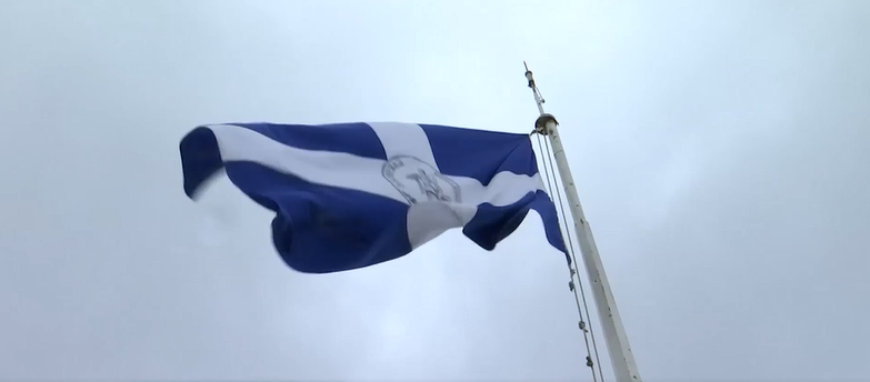 Η έπαρση της ελληνικής σημαίας της απελευθέρωσης της Αθήνας στον Ιερό Βράχο της Ακρόπολης, με αφορμή την επέτειο των 77 χρόνων.