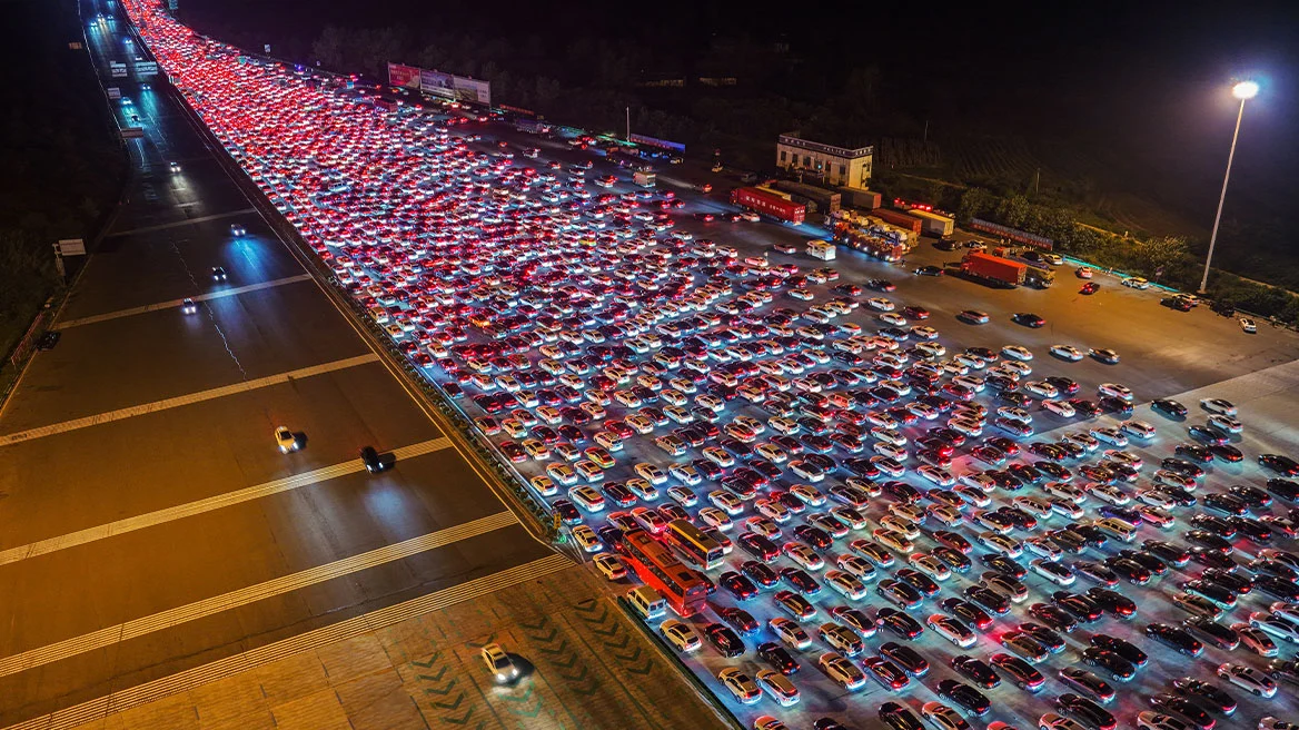Θάλασσα από κόκκινα φώτα στην Κίνα: Εξωπραγματικό μποτιλιάρισμα 120.000 οχημάτων στην επιστροφή των αργιών