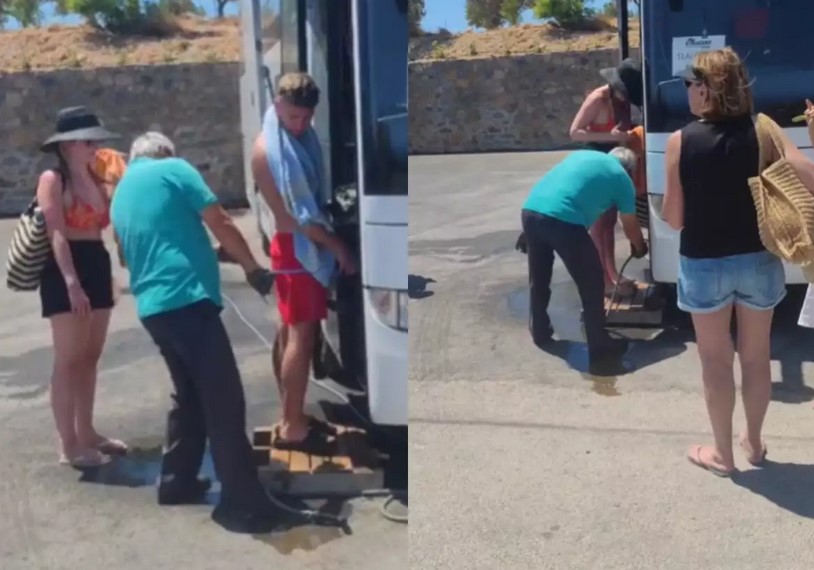 Κρήτη: Οδηγός λεωφορείου ξεπλένει τους τουρίστες από την άμμο πριν μπουν στο όχημα