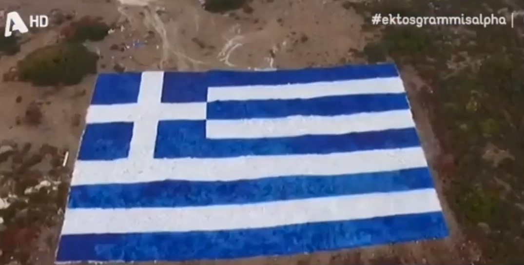Ελληνική σημαία σε έκταση 1,5 στρεμμάτων στις Οινούσσες (βίντεο)
