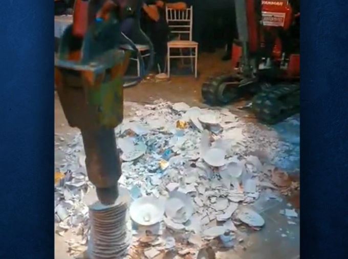 Το… τερμάτισαν στην Σύρο: Έσπαγαν πιάτα με σκαπτικό μηχάνημα σε νυχτερινό κέντρο (Βίντεο)