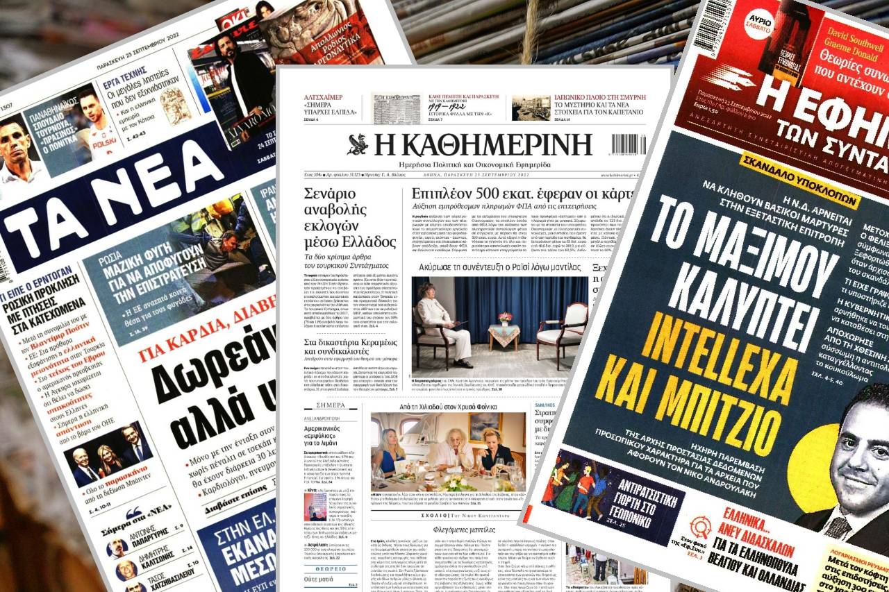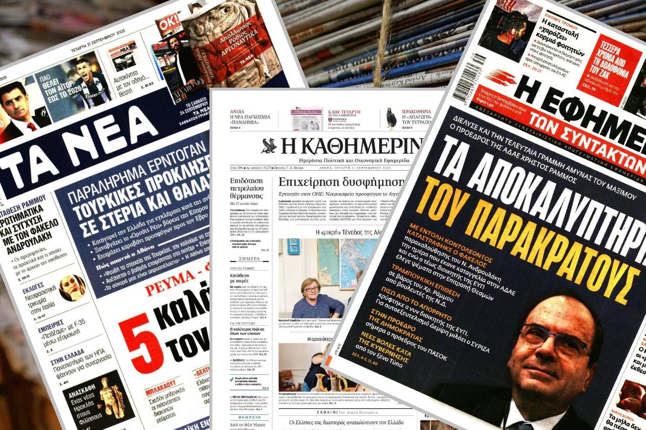 Διαβάστε τα πρωτοσέλιδα των εφημερίδων της Πέμπτης 22 Σεπτεμβρίου