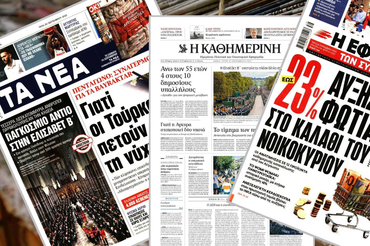 Διαβάστε τα πρωτοσέλιδα των εφημερίδων της Τρίτης 20 Σεπτεμβρίου