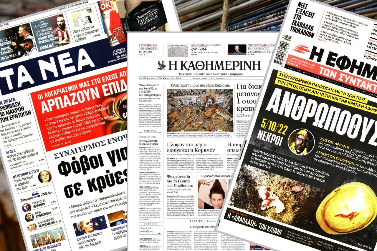 Διαβάστε τα πρωτοσέλιδα των εφημερίδων της Πέμπτης 6 Οκτωβρίου
