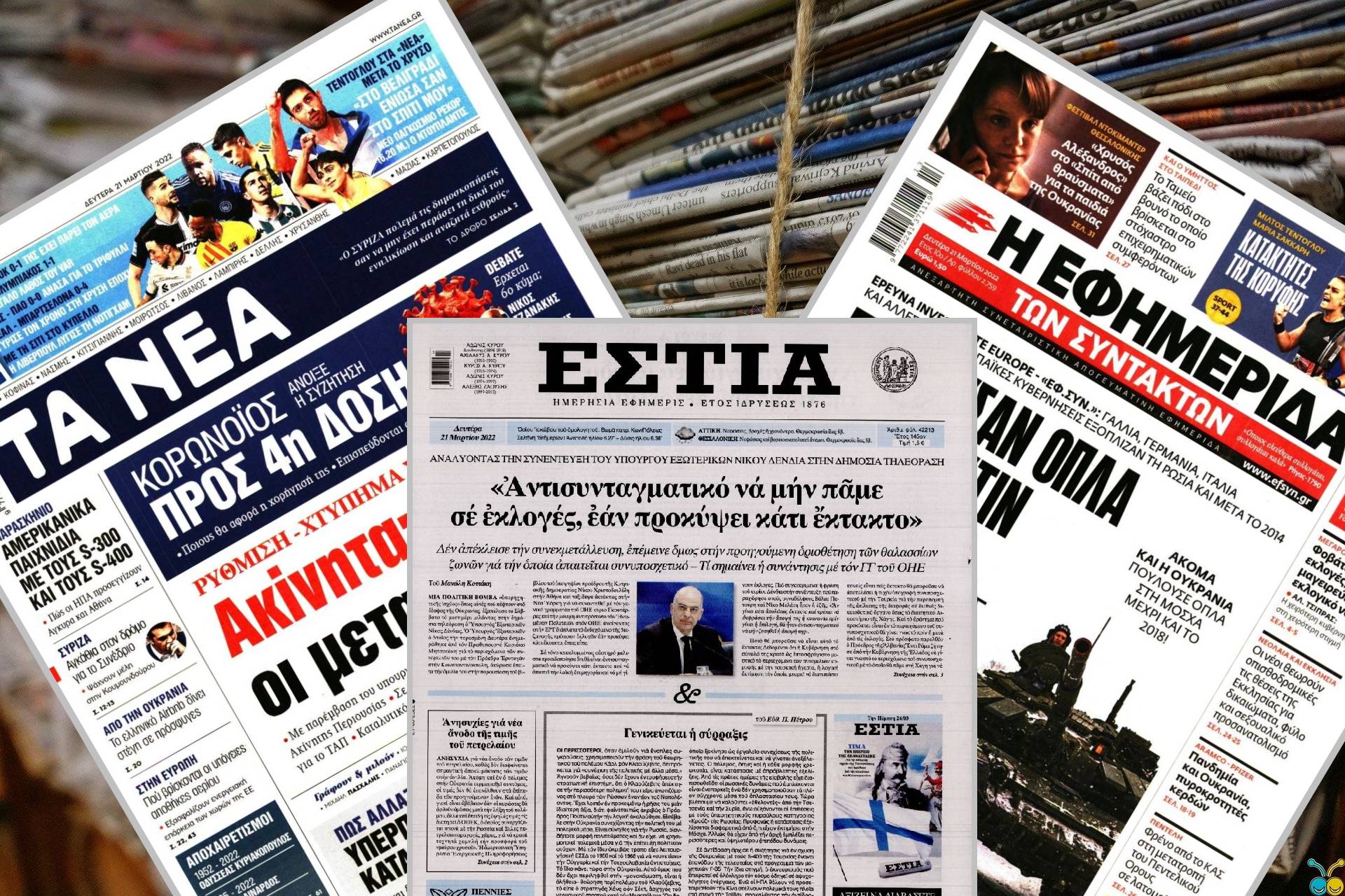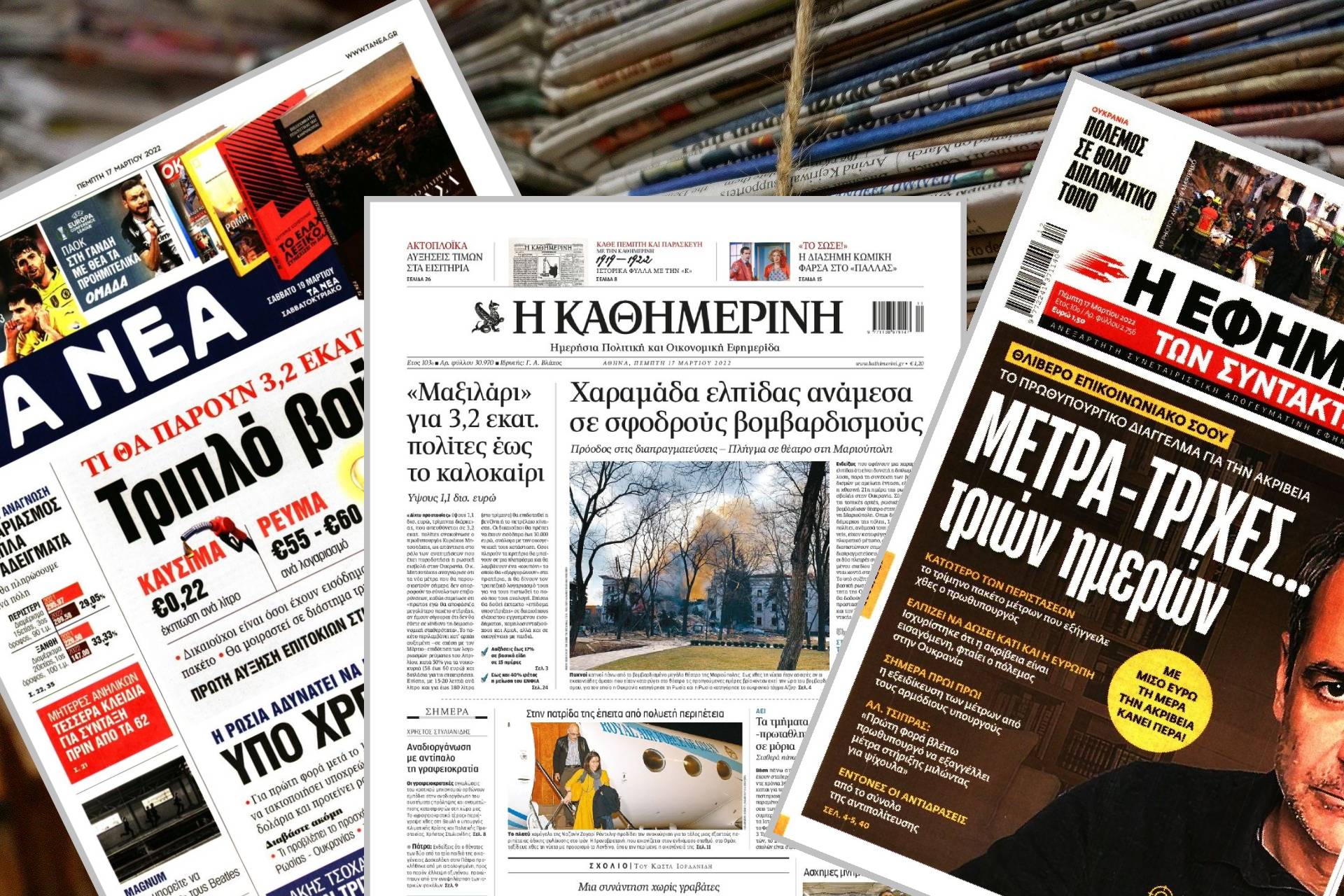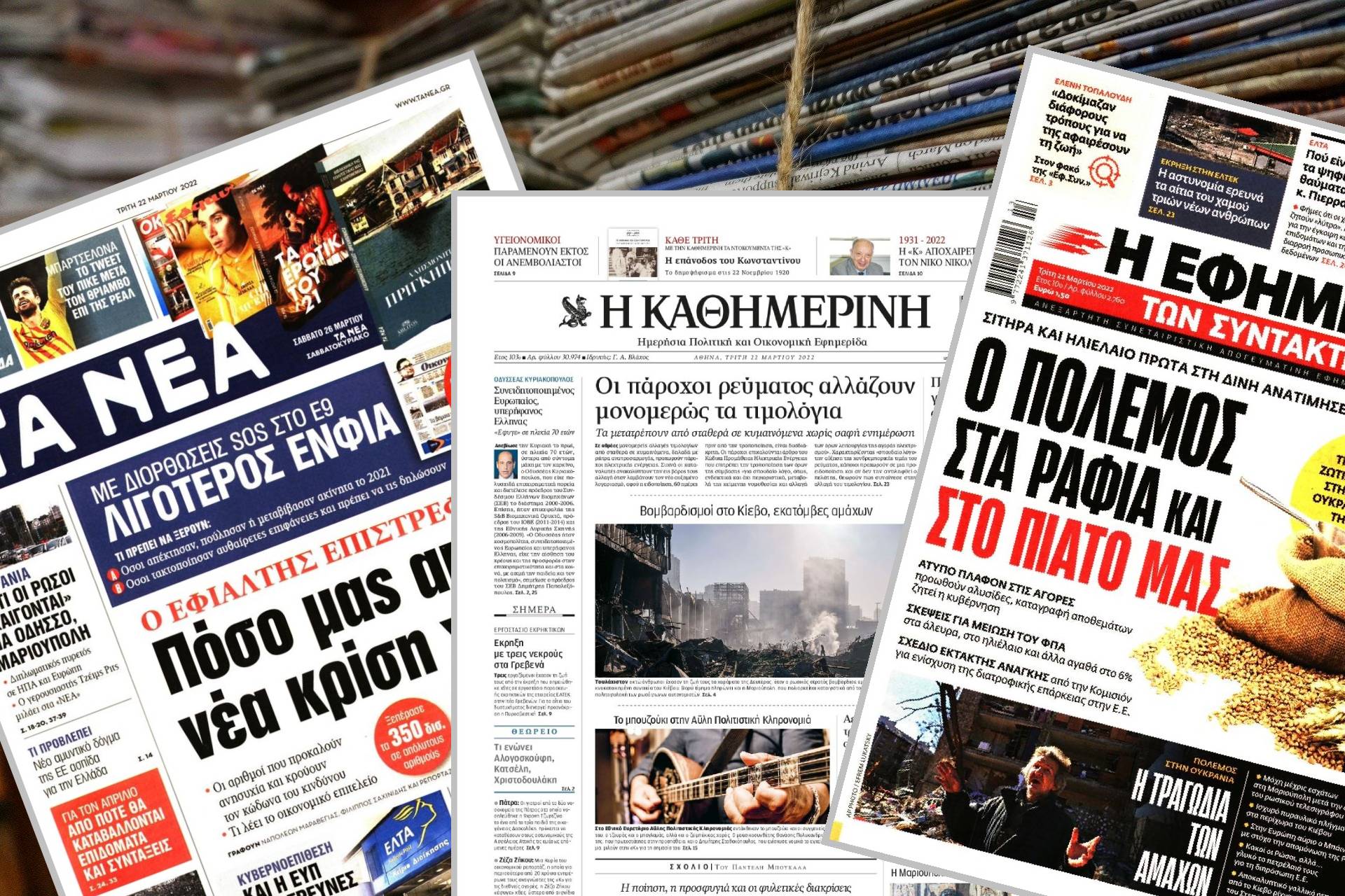 Διαβάστε τα πρωτοσέλιδα των εφημερίδων της Τρίτης 22 Μαρτίου