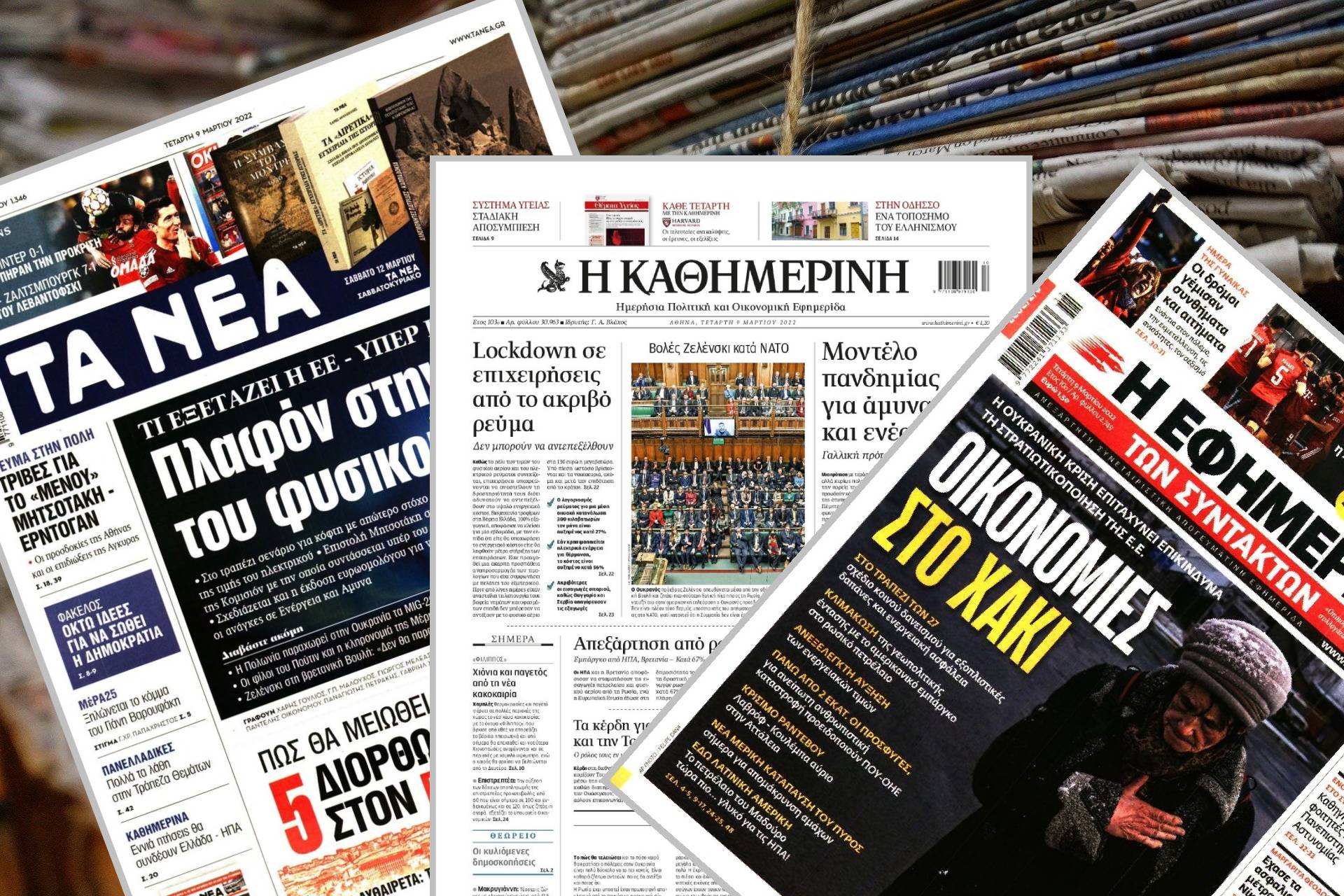 Διαβάστε τα πρωτοσέλιδα των εφημερίδων της Τετάρτης 9 Μαρτίου