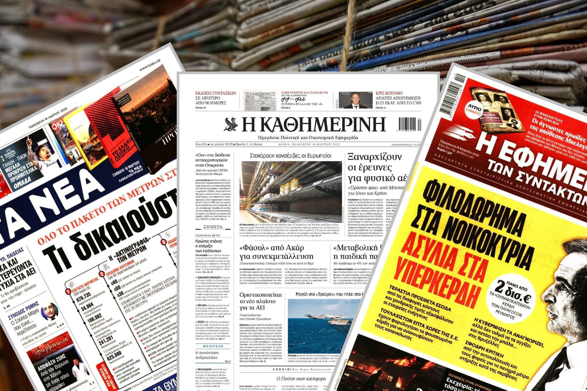 Διαβάστε τα πρωτοσέλιδα των εφημερίδων της Παρασκευής 18 Μαρτίου