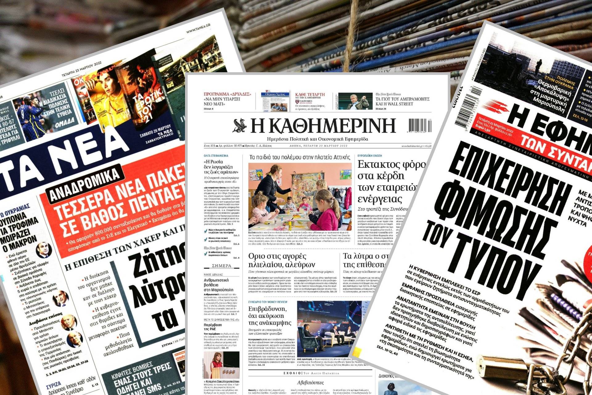 Διαβάστε τα πρωτοσέλιδα των εφημερίδων της Τετάρτης 23 Μαρτίου