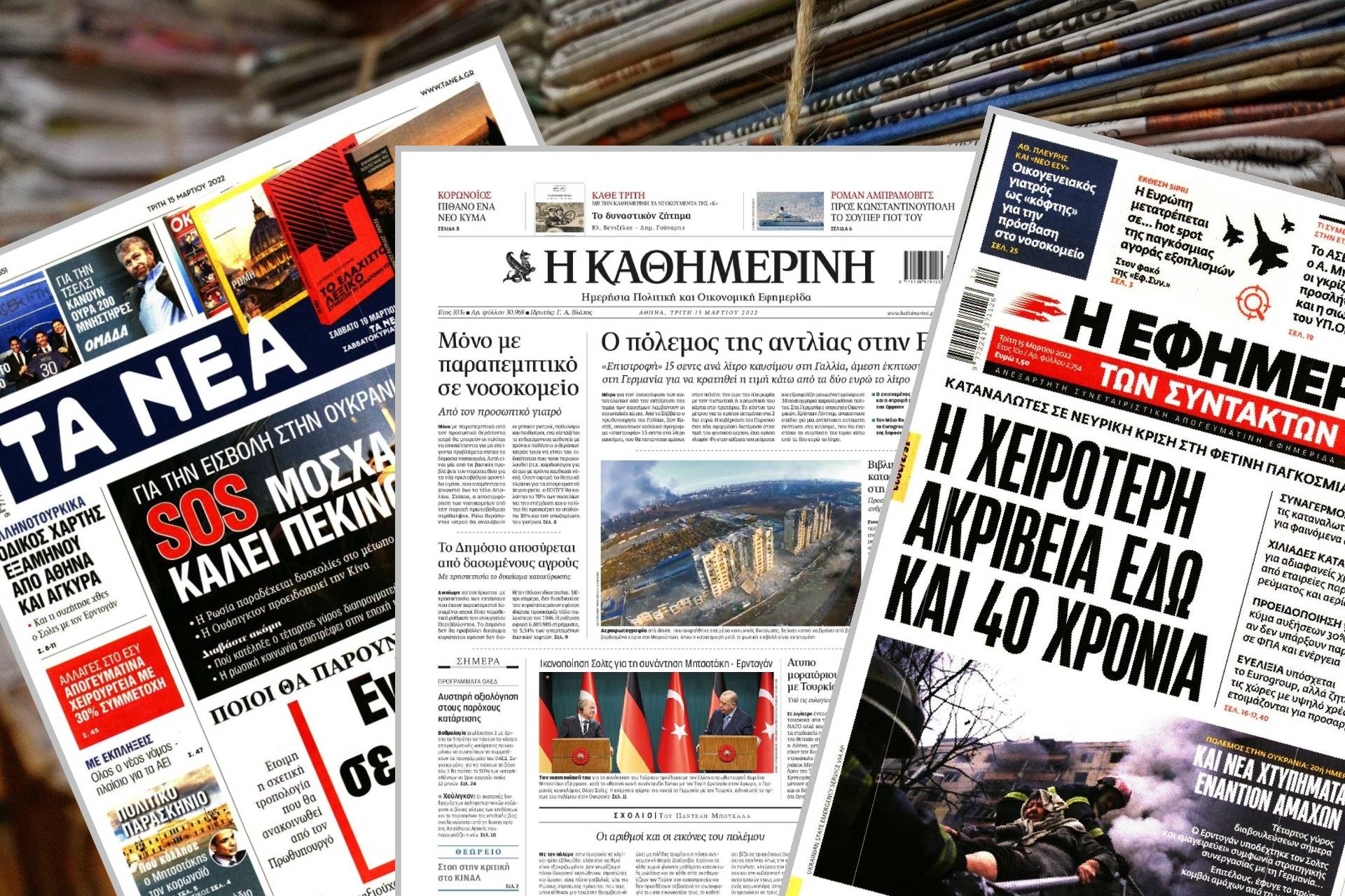 Διαβάστε τα πρωτοσέλιδα των εφημερίδων της Τρίτης 15 Μαρτίου