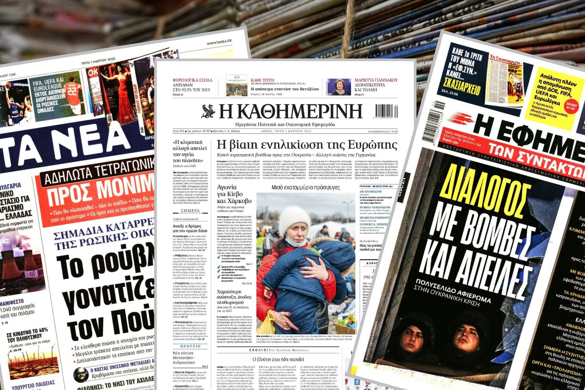 Διαβάστε τα πρωτοσέλιδα των εφημερίδων της Τρίτης 1 Μαρτίου