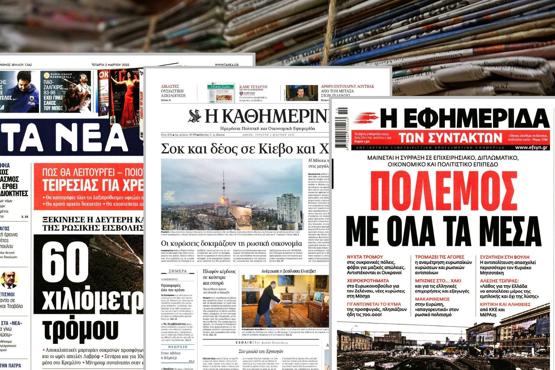 Διαβάστε τα πρωτοσέλιδα των εφημερίδων της Τετάρτης 2 Μαρτίου