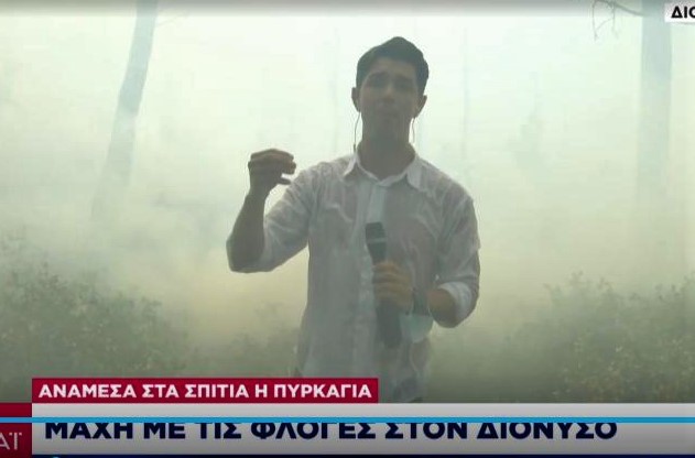 Φωτιά στη Σταμάτα: Το απρόοπτο στον «αέρα» – Το αεροσκάφος έβρεξε τον ρεπόρτερ του ΣΚΑΪ