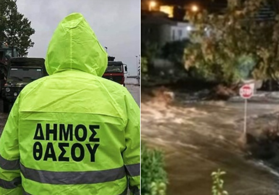 Θάσος: «Μάχη» με τα καιρικά φαινόμενα έδωσαν οι κάτοικοι – Πλημμύρες και παρασύρσεις οχημάτων